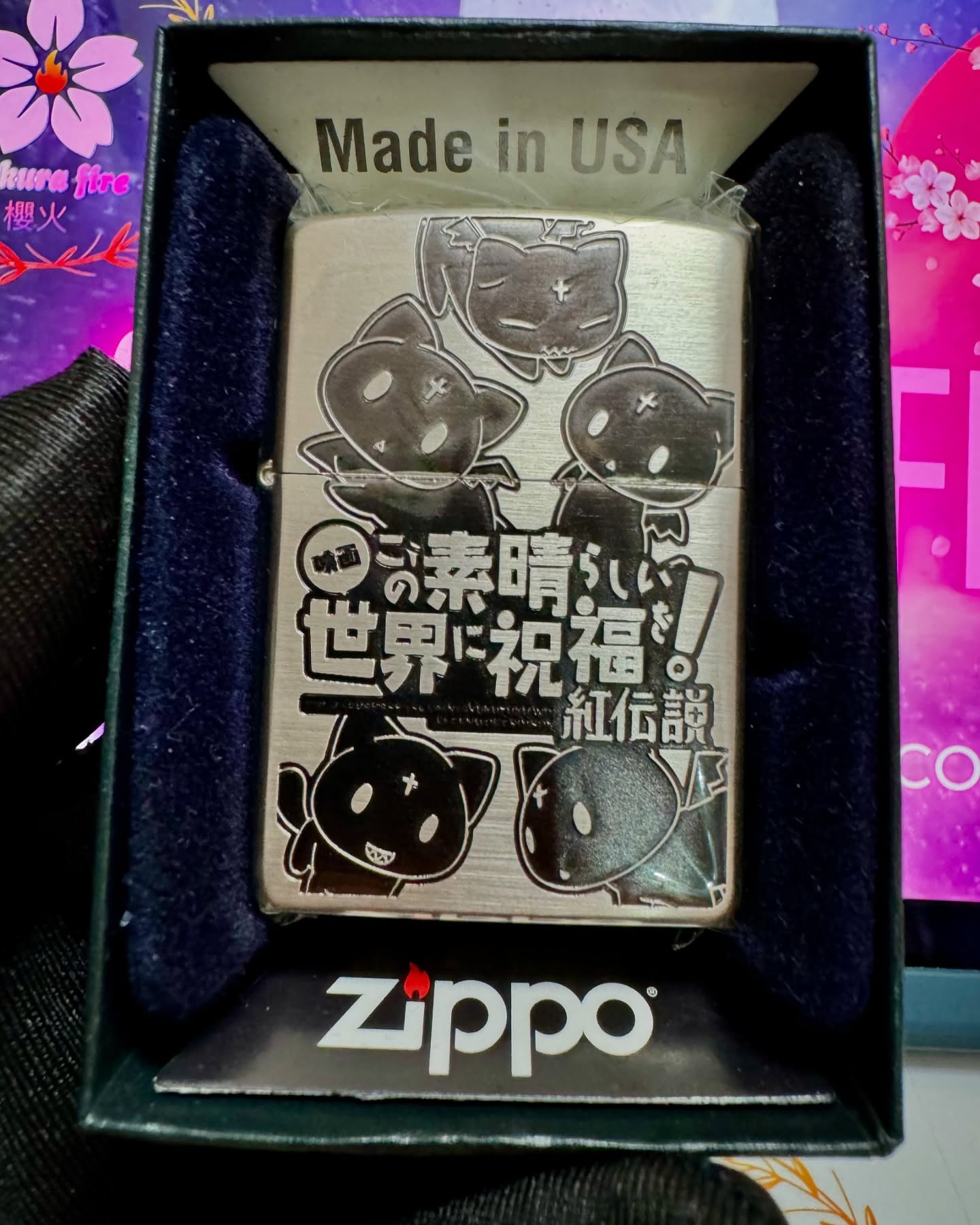 🔥ZIPPO🔥 2019年日版 劇場版《為美好的世界獻上祝福》 紅傳說 惠惠的猫咪 豆之助 雙面雕刻 紀念收藏版 鍍銀打火機